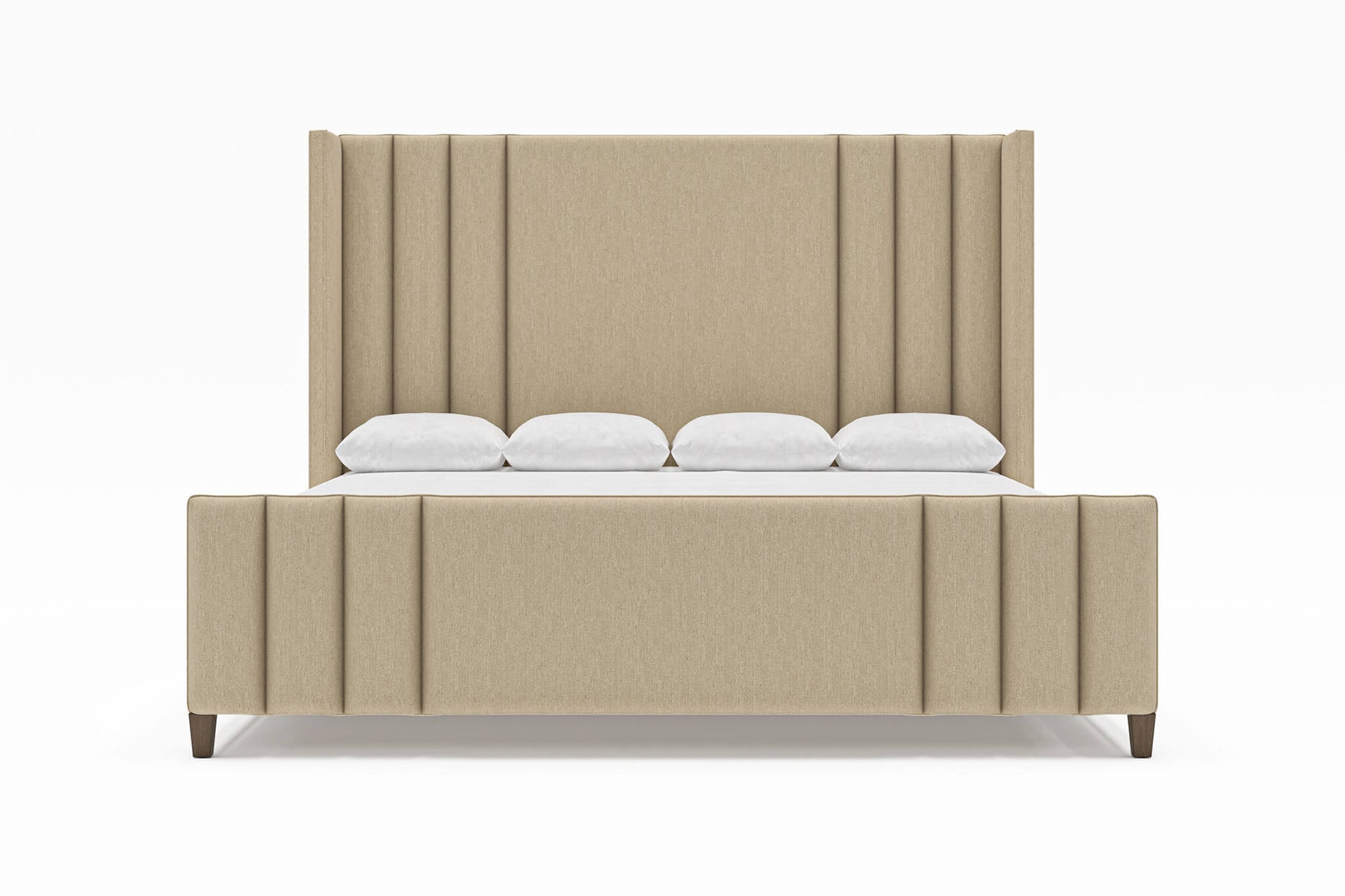 Crafted with meticulous attention to detail, the Adler bed frame showcases a striking vertical channel design on both the headboard and footboard. This clean, linear pattern adds a touch of sophistication and visual interest, making it a statement piece in any space. The Adler is available in a range of beautiful fabric options, allowing you to customize it to match your personal style and bedroom decor.