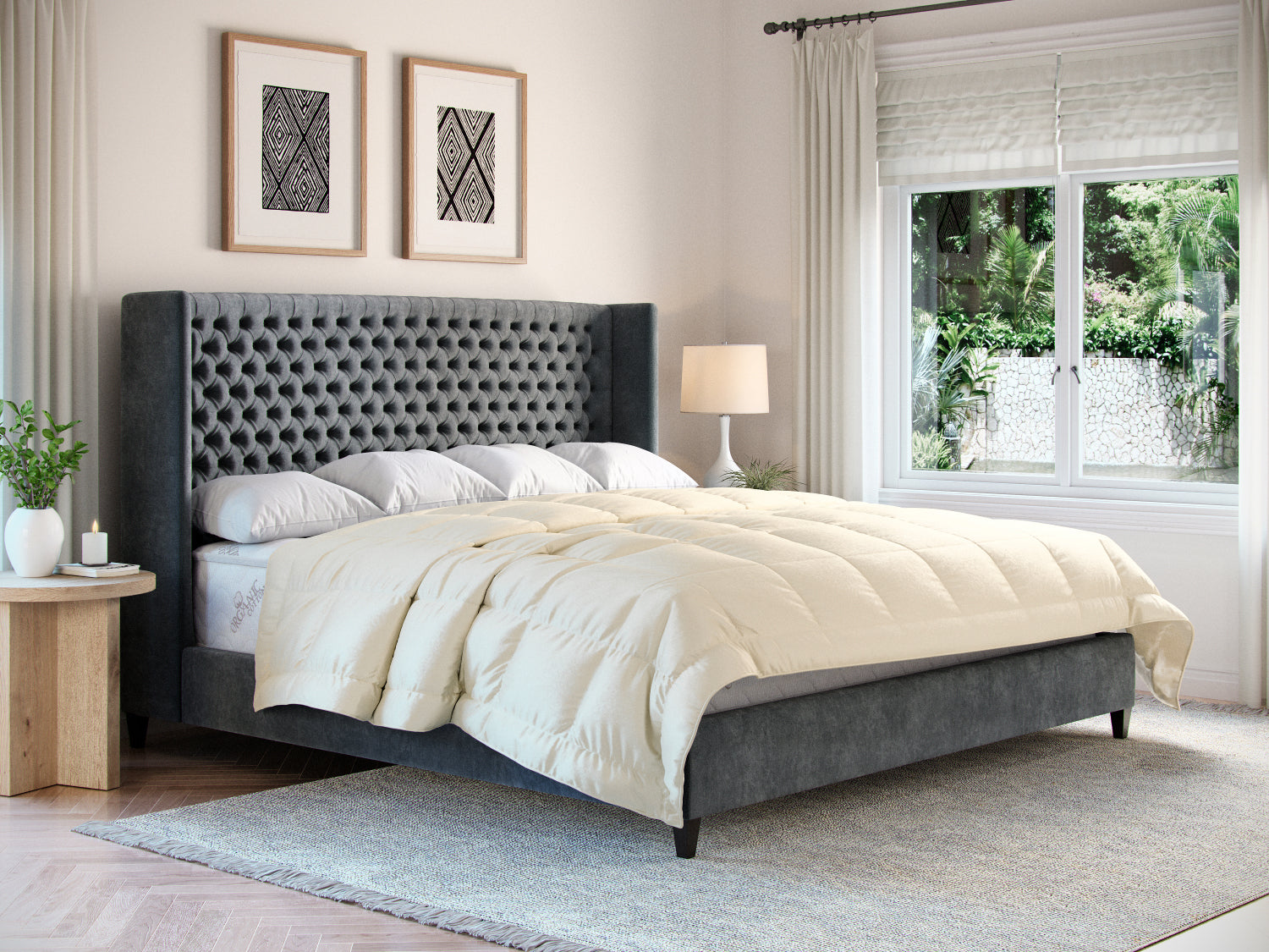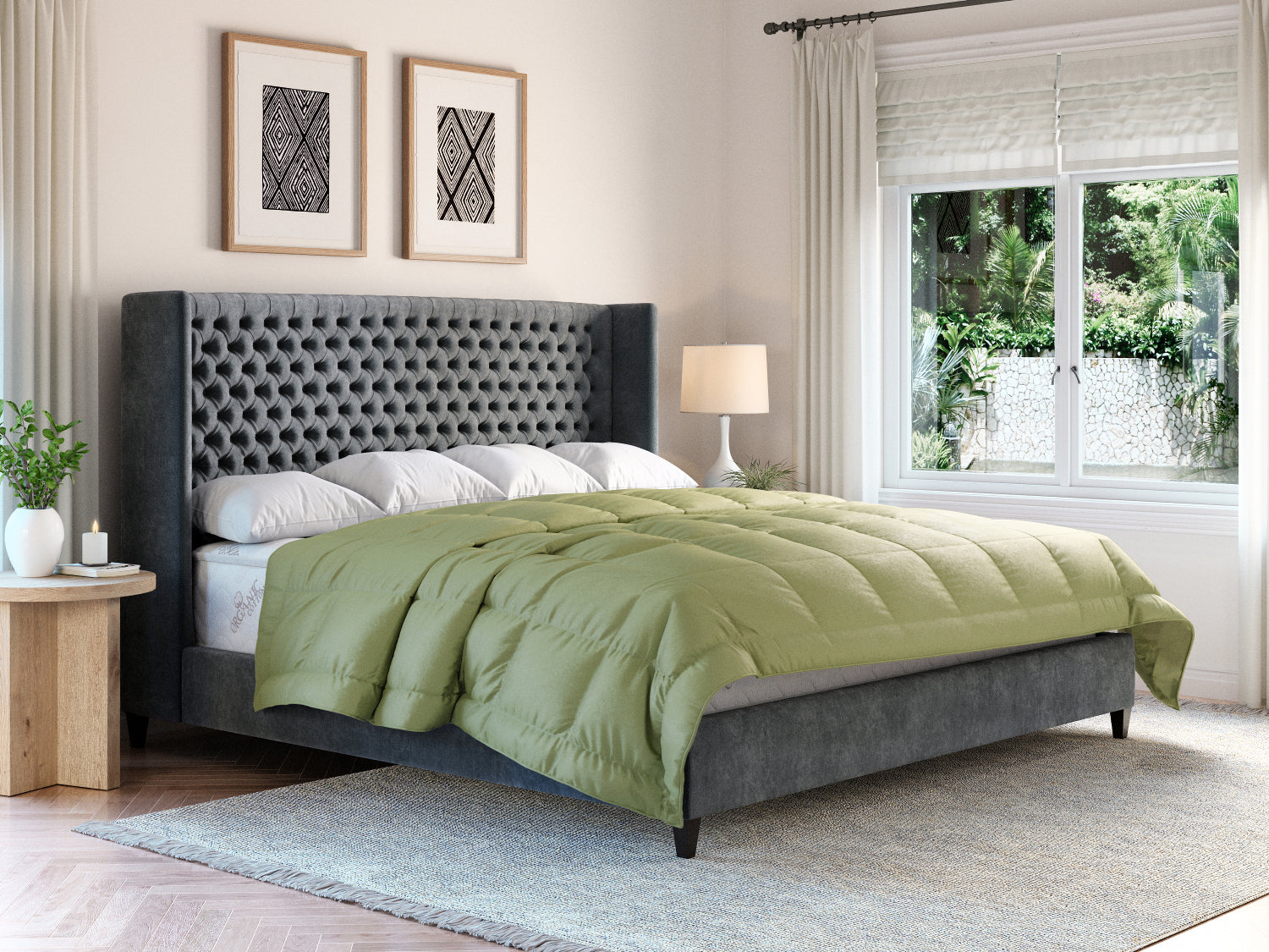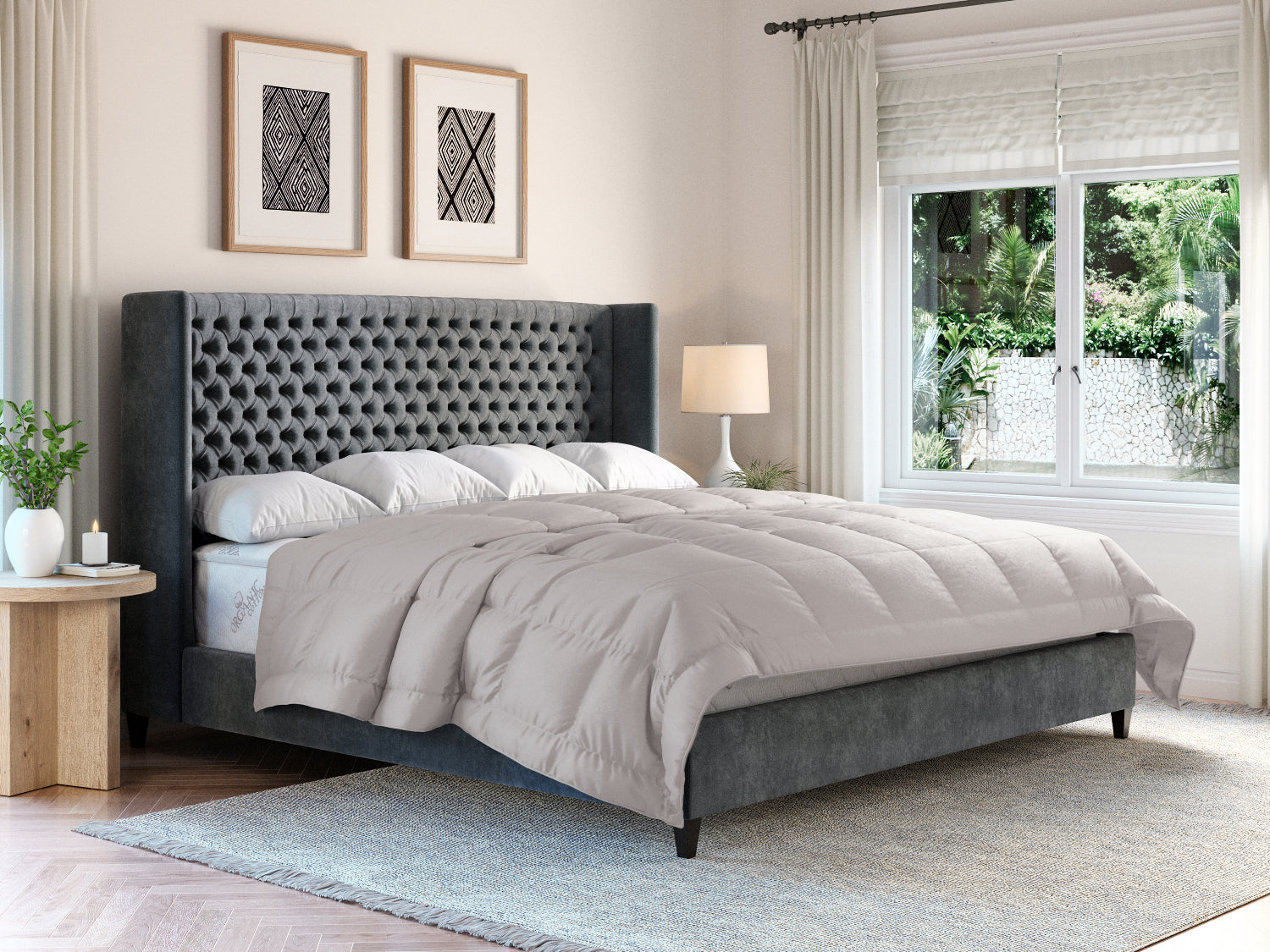 Our Down Alternative Comforter is made to feel virtually identical to Down! It features a 100% hypoallergenic shaved microfiber fill that mimics the warmth and fluffiness of natural down. It's great for those with allergies or living a vegan lifestyle.