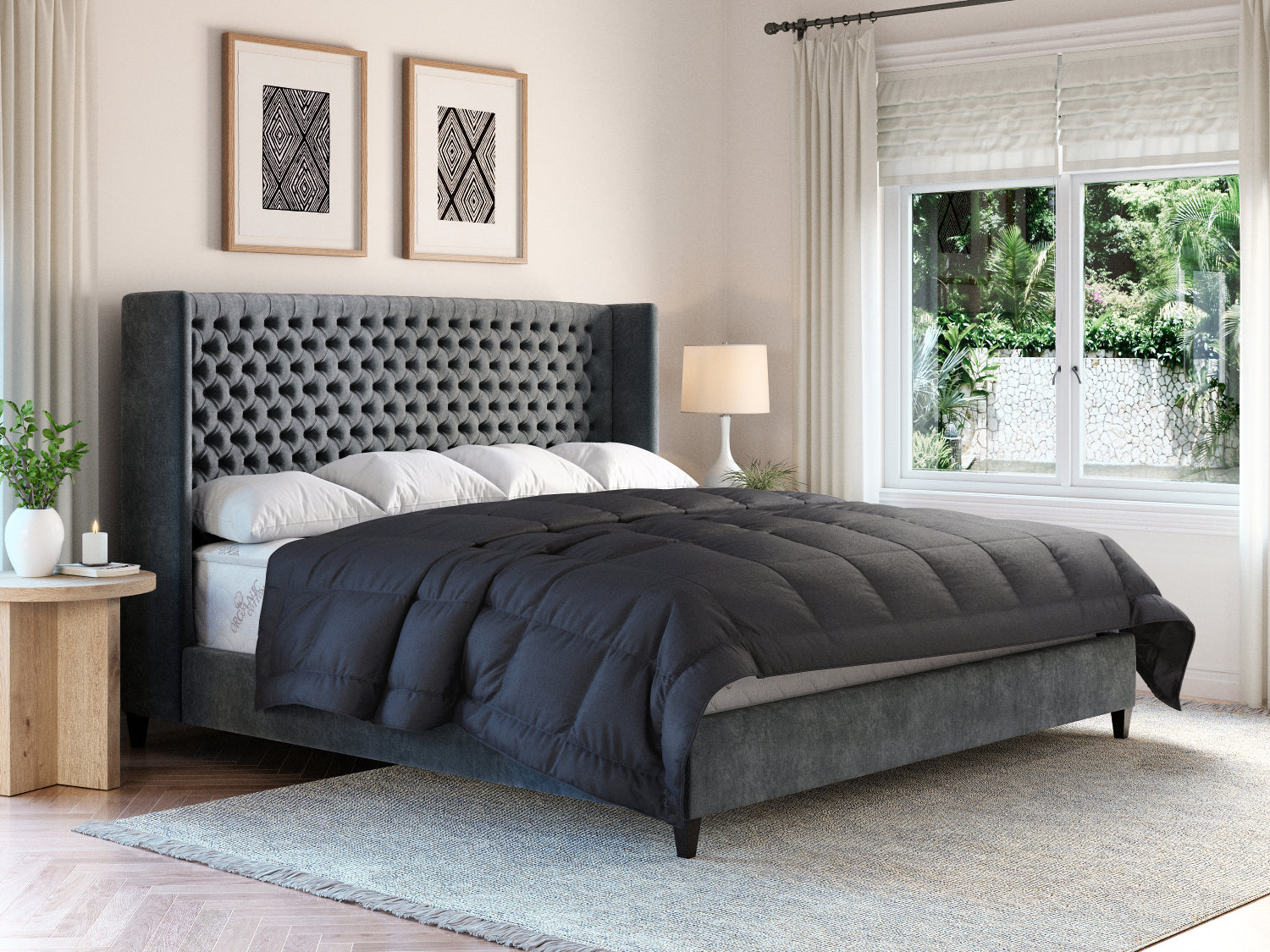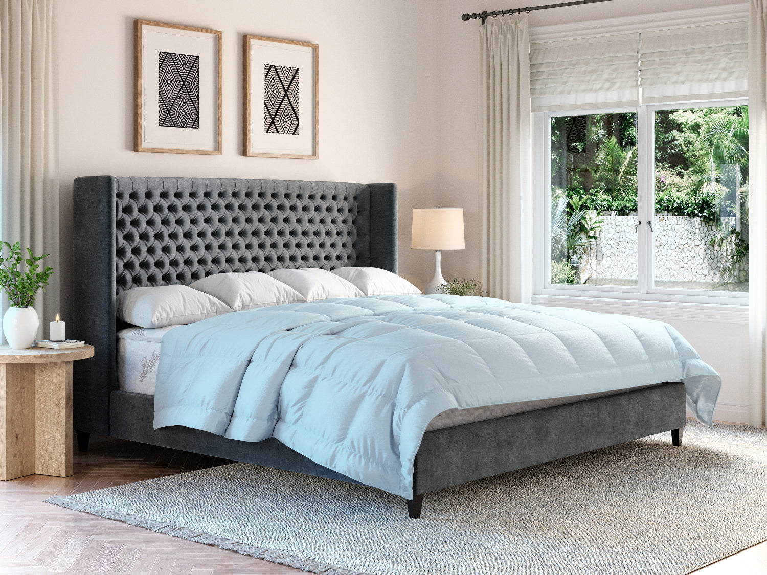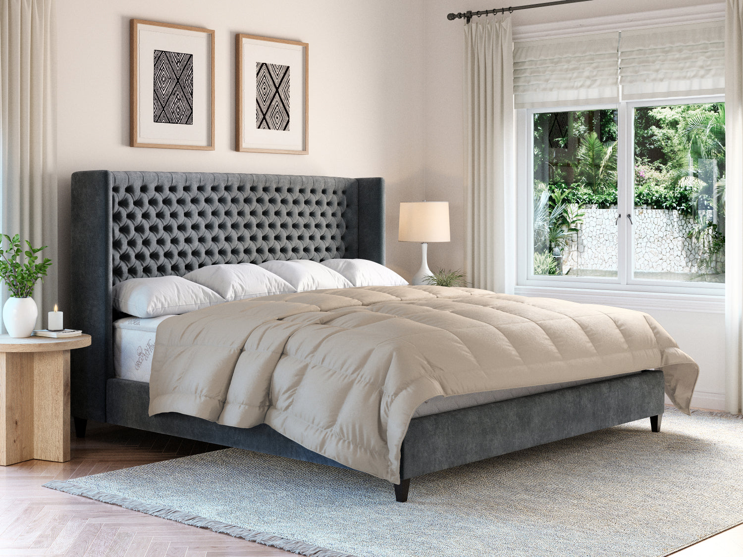 Our Down Alternative Comforter is made to feel virtually identical to Down! It features a 100% hypoallergenic shaved microfiber fill that mimics the warmth and fluffiness of natural down. It's great for those with allergies or living a vegan lifestyle.